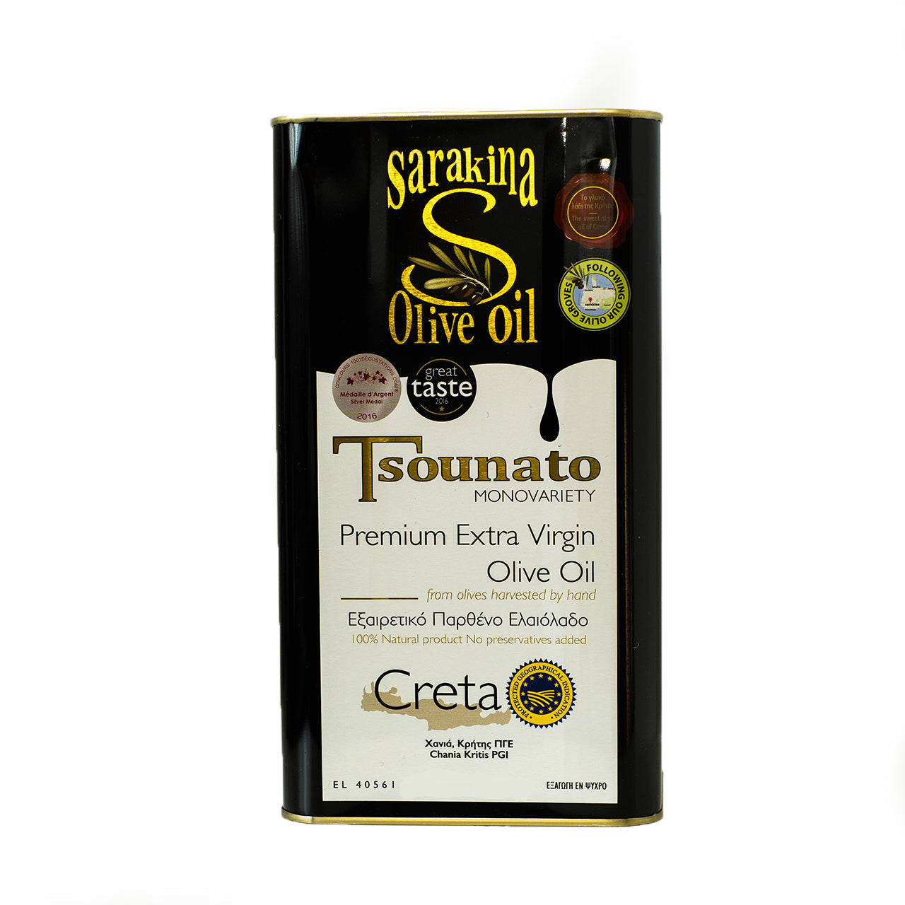 Μονοποικιλιακό Εξαιρετικό Παρθένο Ελαιόλαδο Σαρακίνα, από την Κρήτη. Ποικιλία Τσουνάτη - μοναδική γεύση - premium ποιότητα.